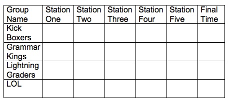 If students got a question right, he wrote down the time in the box for each station. For each question wrong, he put an “X” which meant they lost twenty seconds on their final time.