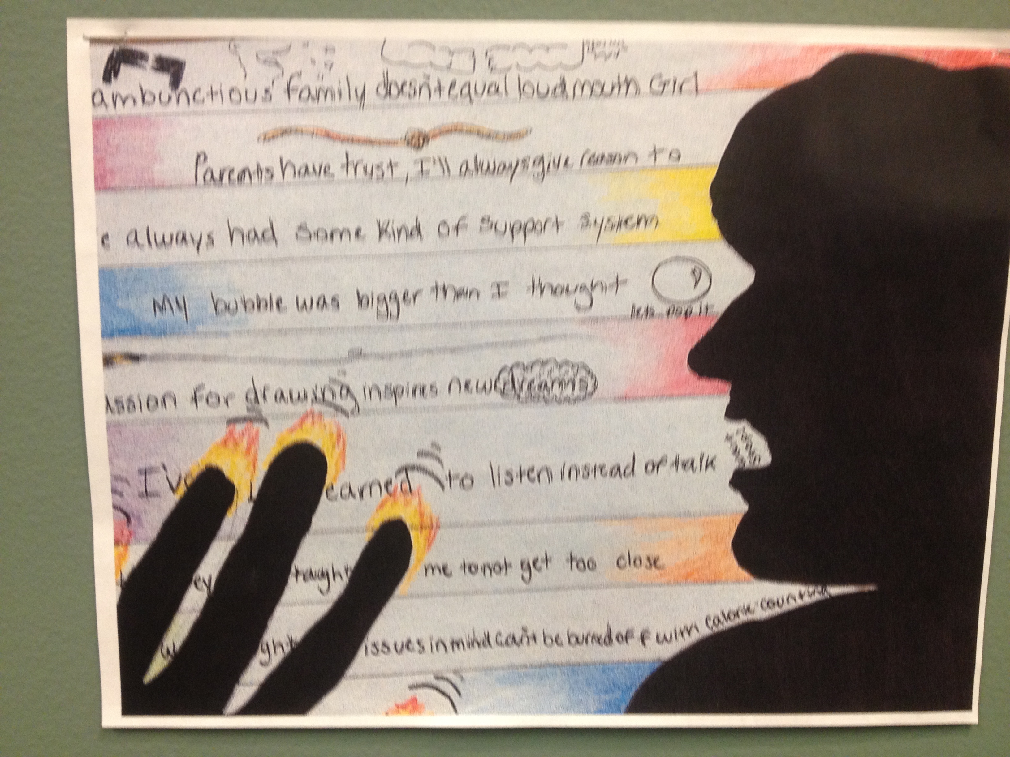 Mandy Bruney’s students participated in the PAGES program which culminates in an annual reception and art show where students’ published work is released in an anthology and the art they created is displayed in a gallery. Here are some photos from the event.