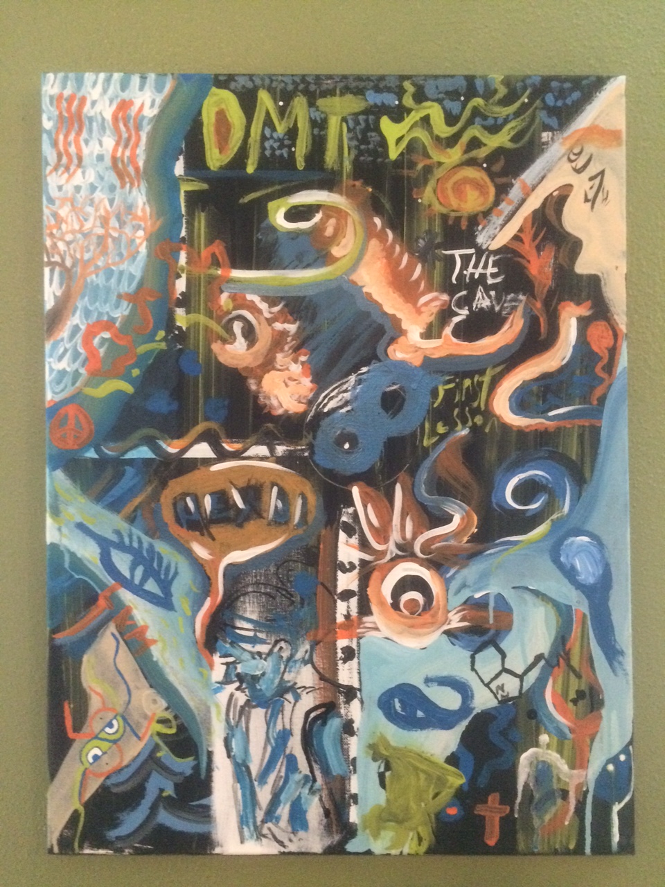 On Gravity Spa’s website, they talk about one of the benefits of floating being increased creativity. They have been experimenting with the idea for awhile. The last time I came a year ago, they had an page on their website offering free or discounted floats to artists who would agree to make art inspired by the tank. When I came this time, the common space between the rooms for floating and massages was filled with collaborative art created in pieces by people who had just left their float experience.
