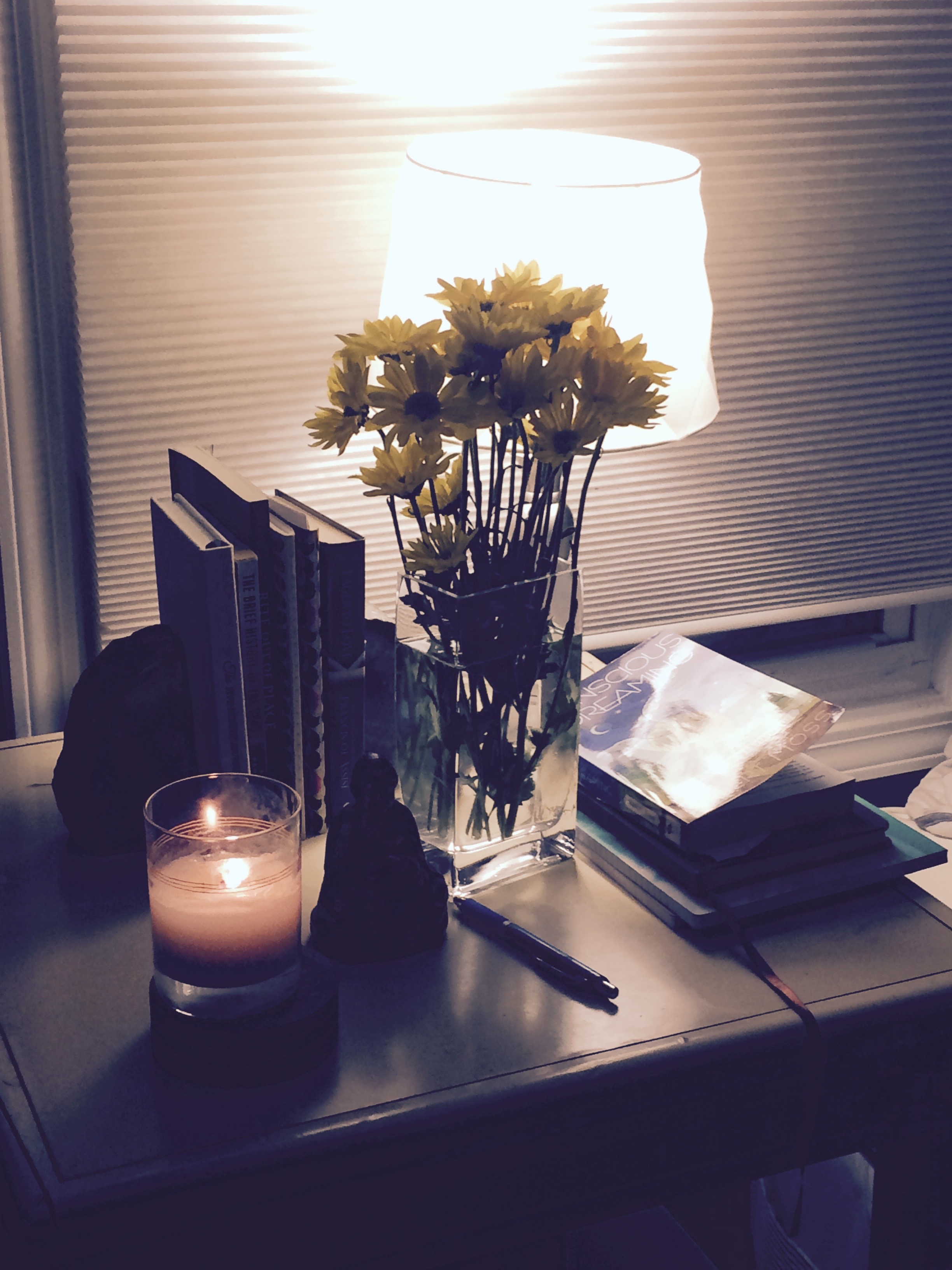 Smelling sandalwood and bergamot during my evening meditation,