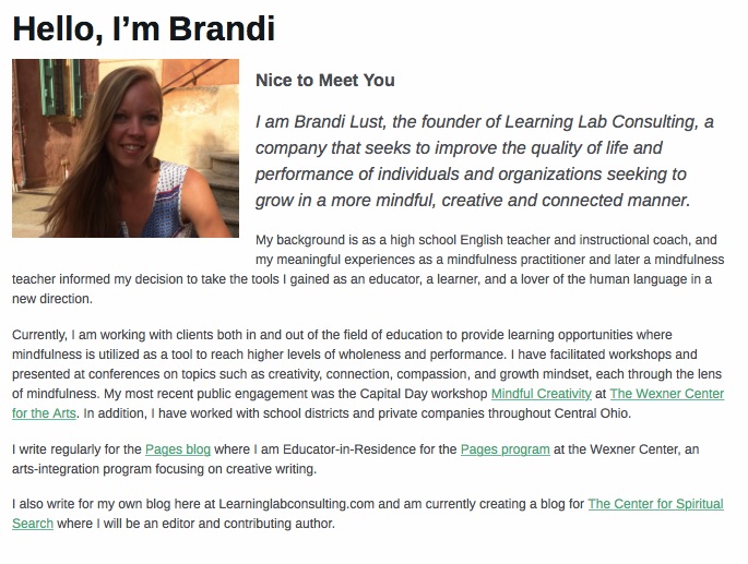 3. In the “Hello, I’m Brandi” tab, I have included more of my professional experiences